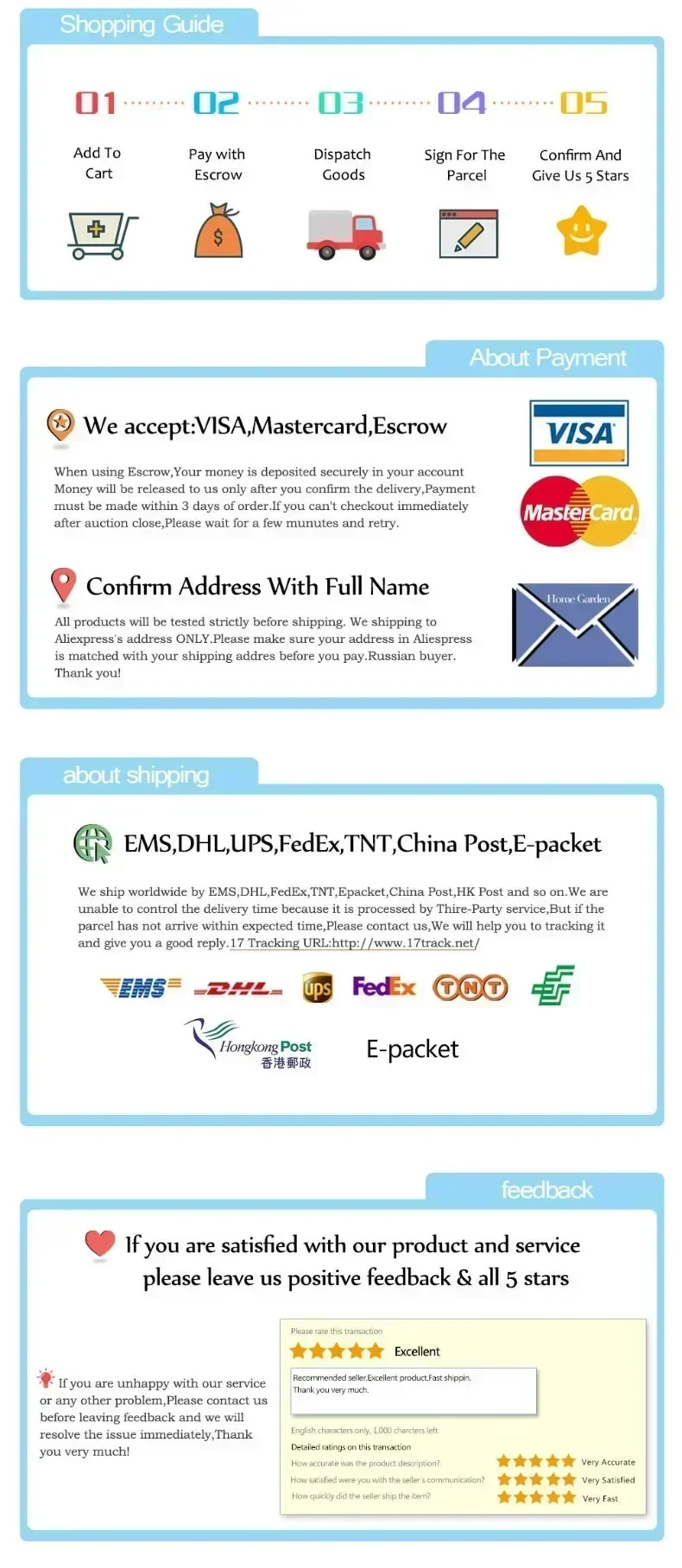 4.Your feedback is very important to us.If all goes well,please click on 5 Stars in the feedback.