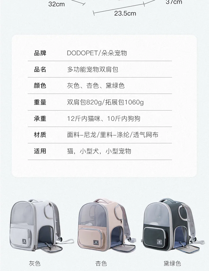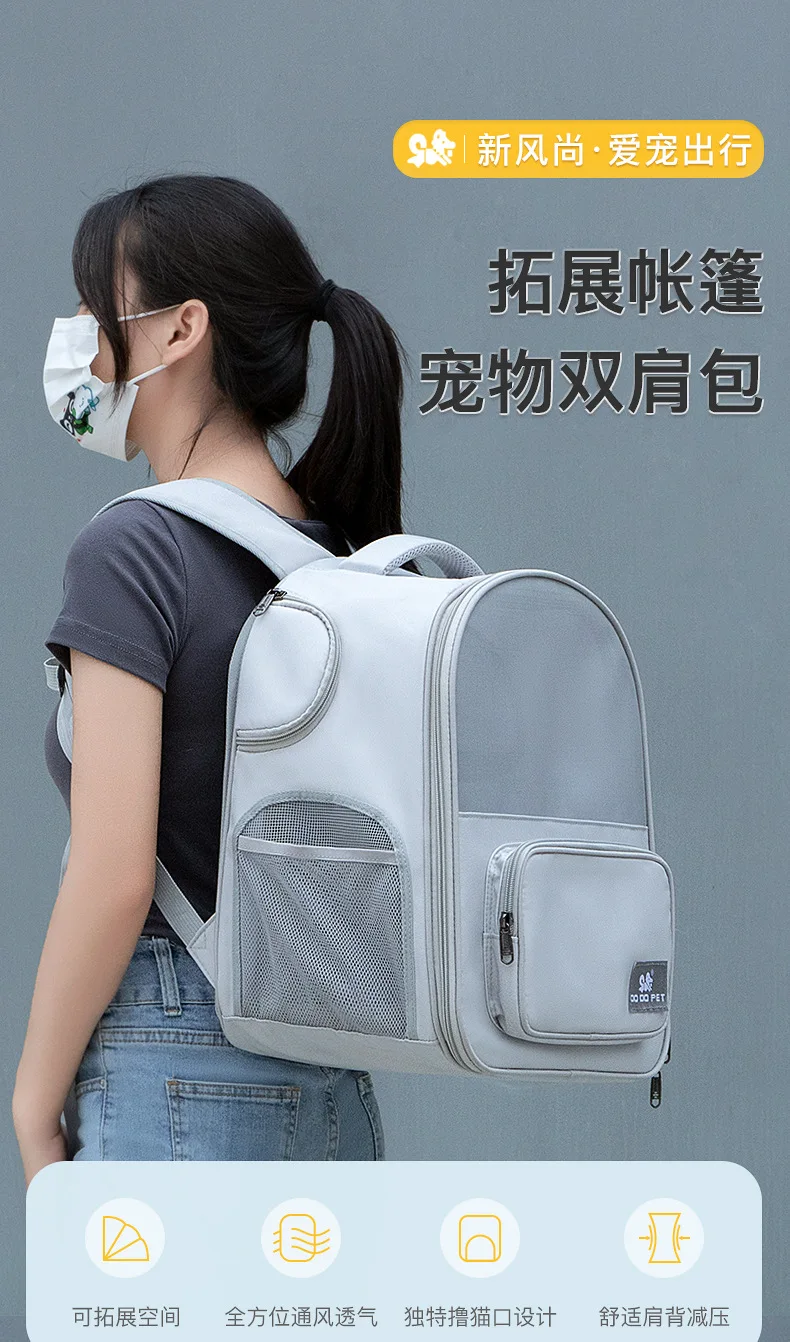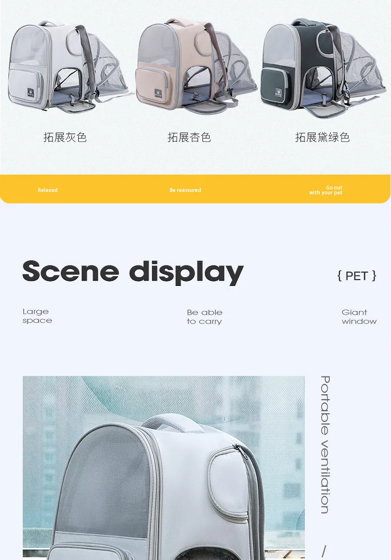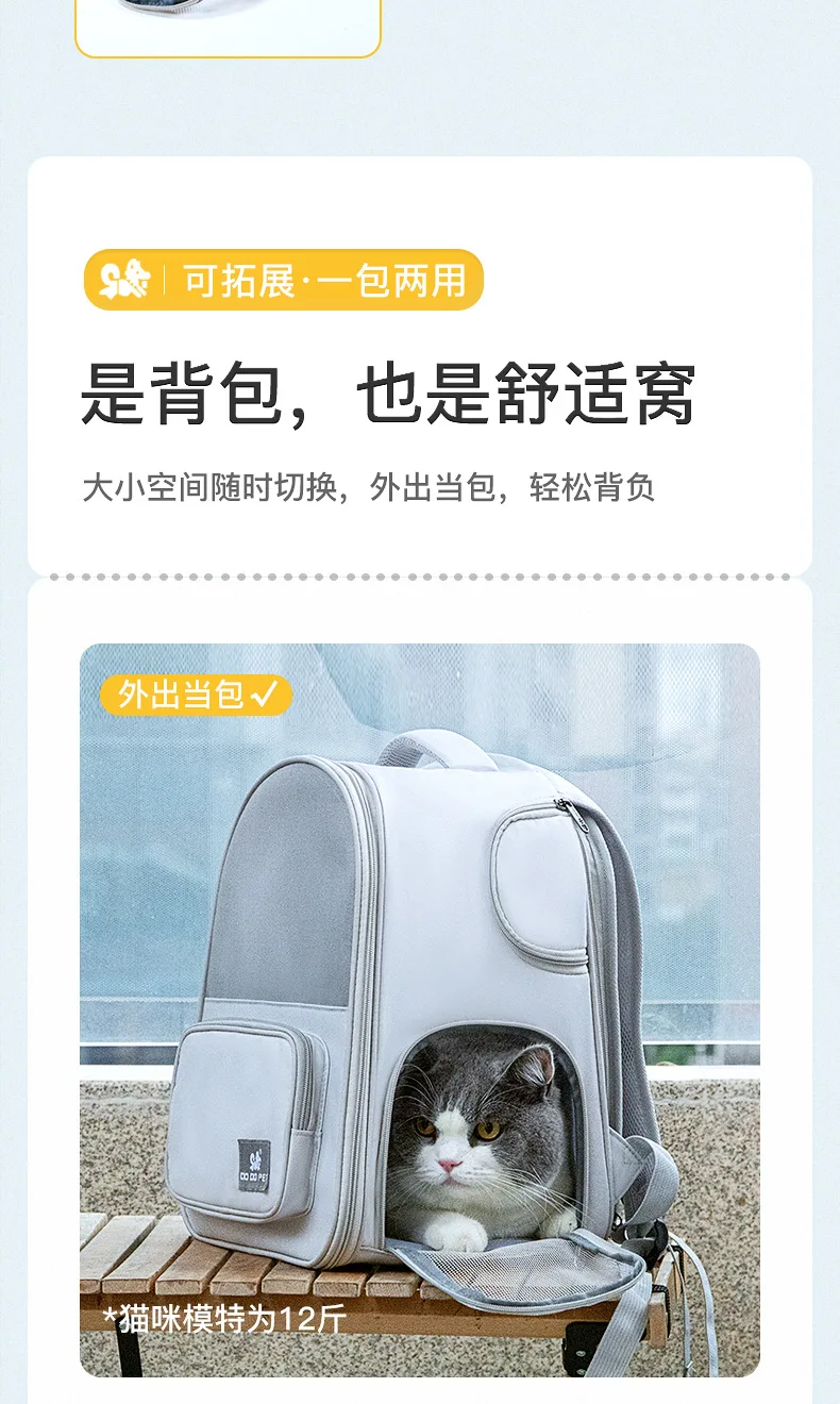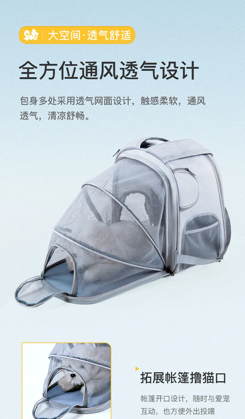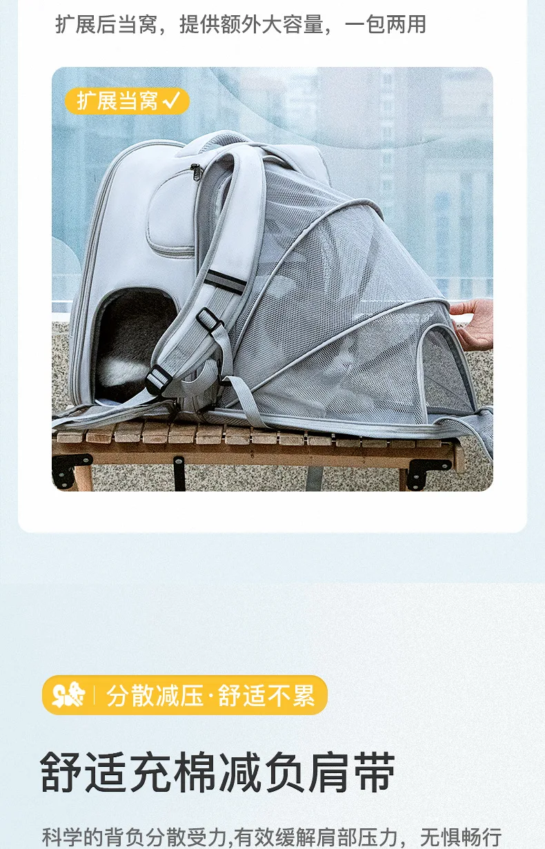Foldable Expandable Pet Backpack, Portable Cat Dog Carrier with Large Capacity for Travel