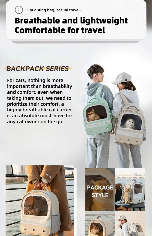 | Design & Appearance This cat travel backpack features a sleek, complete with a semi-transparent viewing window that’s both stylish and functional. With its padded carry handles and ergonomic shoulder straps, you can stay comfortable and look effortlessly polished while out and about with your feline friend. |