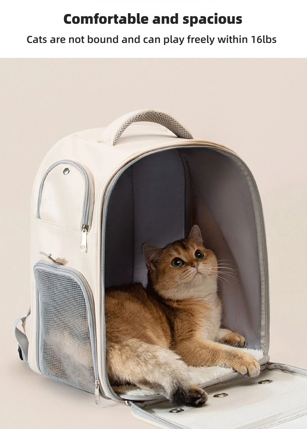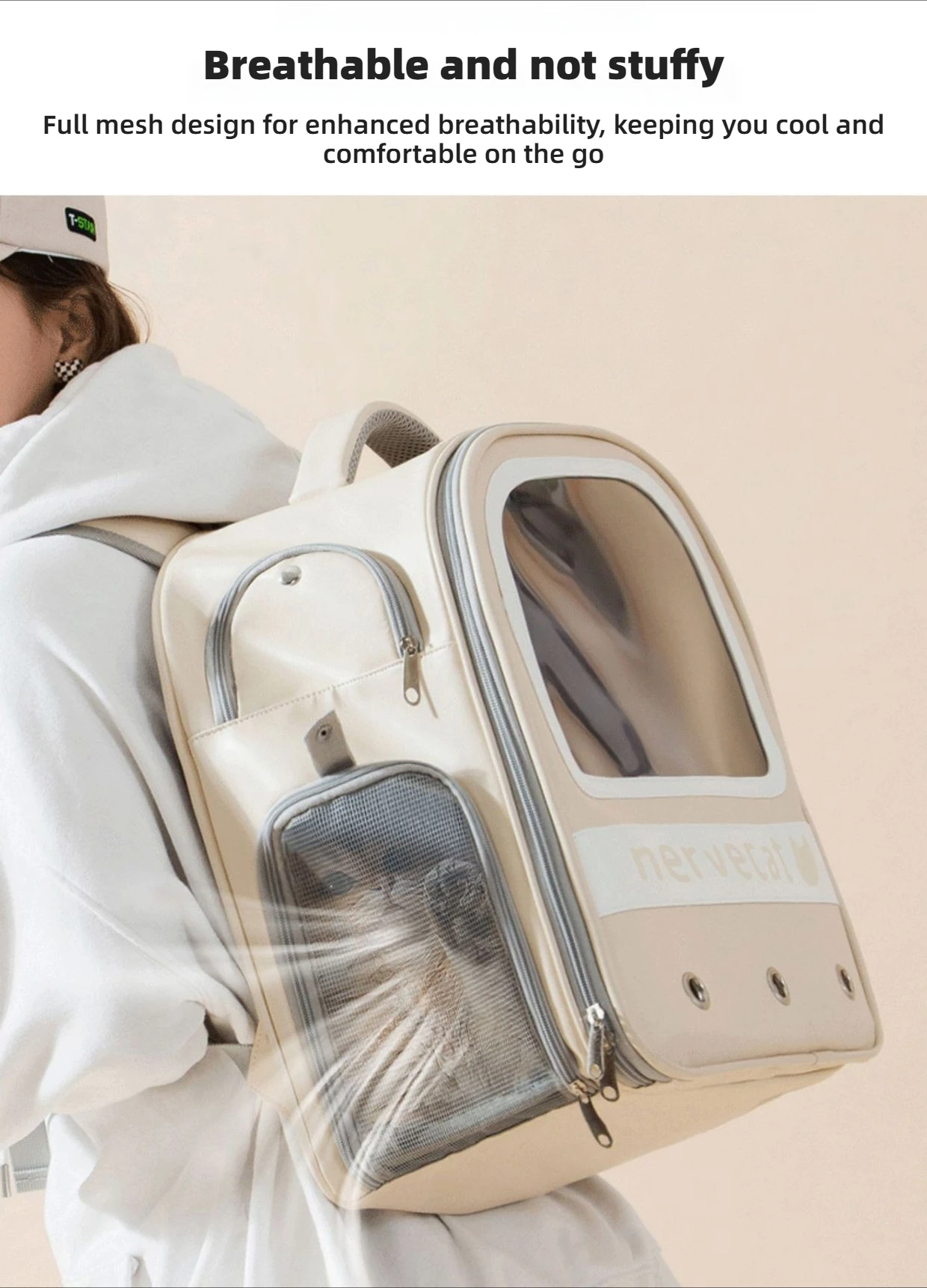 | Breathability & Airflow Engineered with high-density breathable mesh panels on the back and sides, along with a multi-vent air circulation system, this carrier ensures constant fresh airflow. Even on warm days, your cat stays cool and comfortable, enjoying a well-ventilated space throughout the journey. |