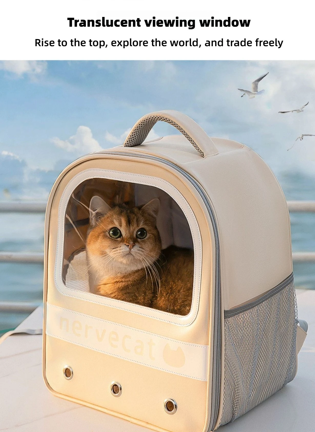 | Clear Viewing Window Equipped with a translucent viewing window, this carrier allows your cat to safely observe the outside world during travels, helping to ease anxiety. You can also keep an eye on your pet at all times to ensure their comfort and safety, making explorations of the world a freer and more joyful experience. |