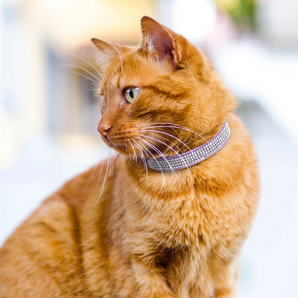 Soft Pink Suede Leather Cat Collar – Cute Bling Rhinestone Design, with Bell & Safety Breakaway Buckle, Adjustable XS/S Sizes